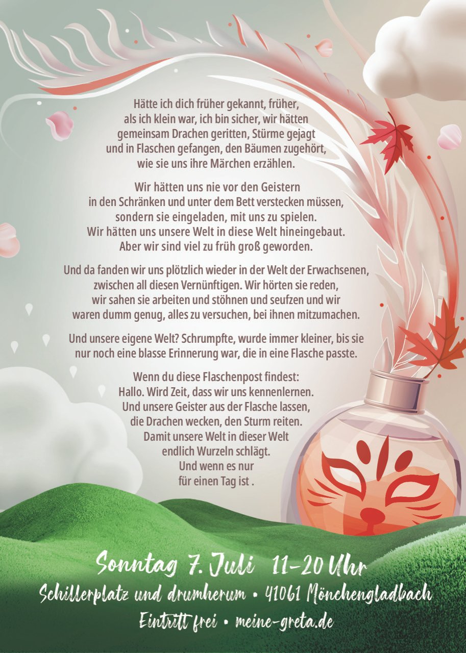 Der Greta Markt ist das Sommer-Pendant zum Claus Markt - ein einzigartiger Design- und Kunstmarkt mitten in Mönchengladbach. Hier findest du handgemachte Unikate, lokale Kunst und außergewöhnliches Design unter freiem Himmel.